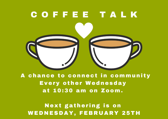 Bring your coffee, bring your tea, or even just bring a big glass of water and join us for a time of fellowship and conversation.