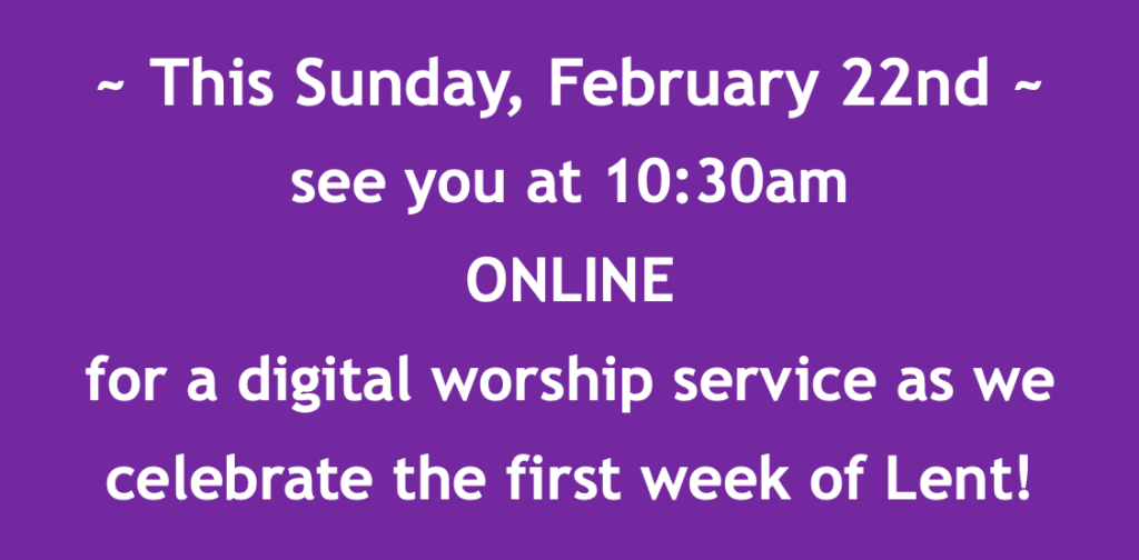 • Peace Chapel in the Zoom Sanctuary at 7pm on Wednesday, March 4th & again on Wednesday, March 18th