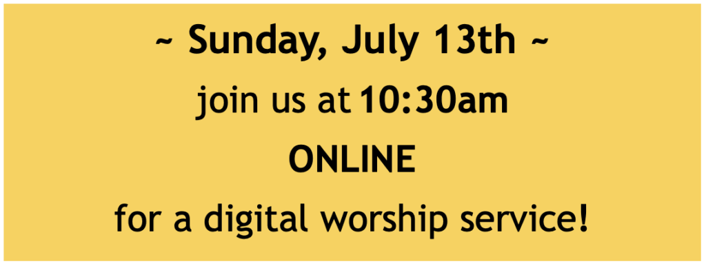 Only two weeks left until our Worship & Picnic in the Park on July 27th! Debbie Southorn will be strumming the guitar in service, so start warming up your vocal cords & thinking about what you want to bring to the potluck feast!